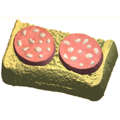 Бутерброд с колбасой 527 - формочка для мыла ручной работы. Аппетитный бутербродик с двумя кусочками колбасы. Размеры готового кусочка мыла - мм
