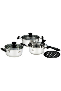 Набор посуды изготовлен из высококачественной нержавеющей стали. Этот набор кастрюль предназначен для приготовления здоровой пищи. С минимальным количеством масла или с небольшим количеством воды, продукты сохранят большинство полезных веществ, витам