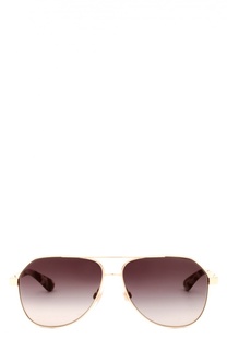 Солнцезащитные очки с градиентными линзами конъячного оттенка вошли в весенне-летнюю коллекцию бренда, основанного Доменико Дольче и Стефано Габбана. Авиаторы с тонкими дужками выполнены из позолоченного металла. Заушники дополнены вставками из коричнев...