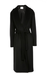 Пальто с широкими лацканами и высокой шлицей сшито из шерсти с добавлением полиамида. Модель с запахом дополнена врезными боковыми карманами и поясом-лентой. Состав: Шерсть: 80%; Полиамид: 20%;