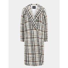 Бежевое клетчатое пальто с широкими лацканами и двумя врезными карманами сшито из фактурной ткани с добавлением мягкой шерсти. Однобортная модель с плавной линией плеч отлично держит тепло, не сковывает движения и не утяжеляет силуэт несмотря на свой об...