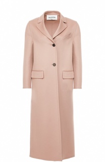 Розовое однобортное пальто из микса натуральной шерсти от Valentino. Зазубренные лацканы, застёжка на пуговицах спереди, длинные рукава, манжеты на пуговицах.