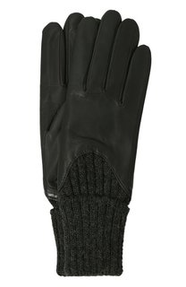 Черные эластичные перчатки из ультрамягкой шерсти дополнены подкладом из гипоаллергенной альпаки. Однотонная модель с кожаными вставками и узким ремешком, регулирующим посадку на запястье, отлично держит тепло и не сковывает движения. Накладка на указат...