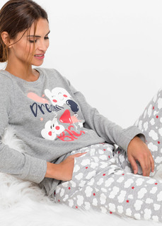 Удобная пижама с длинными рукавами и круглым вырезом горловины. Комбинированные пижамные брюки со стильными вставками вдоль внешних боковых швов.