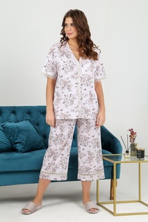 Пижама женская выполнена из качественного трикотажного полотна - интерлок (хлопок 100%). Пижама с брюками и футболкой с 3/4 рукавом. Костюм пижамный выполнен из натурального 100% хлопка, что делает его воздухопроницаемым, гигроскопичным и гипоаллергенны...