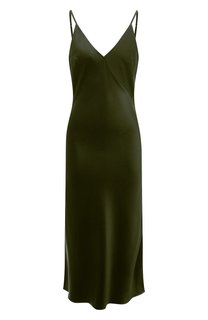 Двустороннее платье-комбинацию выполнили из итальянского шелкового атласа. Глубокое V-образное декольте зарифмовали с вырезом, открывающим спину. Посадку удобно регулировать узкими бретелями со слайдерами. Модель насыщенного цвета хаки можно вывернуть и...
