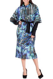 Артикул: П4201. Ткань: костюмная, шифон. Состав: 65% п/э, 30% вискоза, 5% эластан. Цвет: бирюзовый. Принт: анималистический. Вид застежки: потайная молния в боковом шве. Силуэт: полуприлегающий. Карманы: отсутствуют. Тип горловины: стойка. Длина изделия...