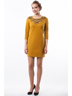 Платье футляр из плотного трикотажа . Горловина декорированна вышивкой, совмещающей многообразие техник:застил,шнур,пайетки и перфорацию.
