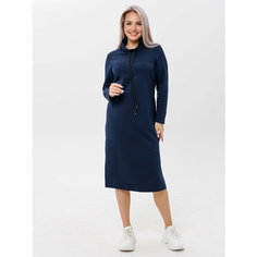 Стильное длинное платье свободного кроя. Выполнено из однотонного плотного трикотажного полотна. Расцветка темно-синий. Горловина оформлена воротником - хомут. Рукава со спущенным плечом 66 см. С карманами. По переду застрочка. Низ ровный, с разрезами п...