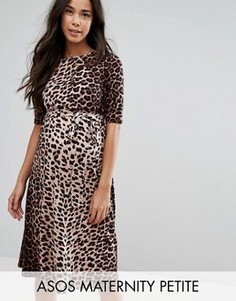 Maternity dress by ASOS Maternity PETITE, Легкий эластичный трикотаж, Леопардовый рисунок, Круглый вырез, Пояс с завязками на талии, Классический крой, точное соответствие размеру, Подходит для любого срока беременности, Машинная стирка, 96% вискоза, 4%...