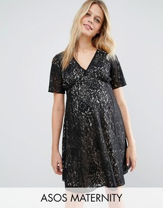Maternity dress by ASOS Maternity, Ткань на подкладке, Верхний слой из прозрачного кружева, Фестонные края, Кружевная отделка, V-образный вырез сзади, Застежка-молния, Классический крой, точное соответствие размеру, Подходит для любого срока беременност...