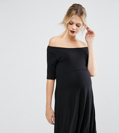 Платье для беременных ASOS DESIGN Открытые плечи Бриджит знает лучше Отворот Оборка по нижнему краю Облегающий крой Моделирует фигуру Подойдет вам как во время беременности, так и после