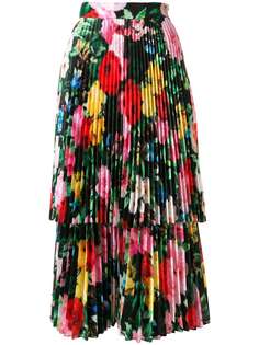 Платье с цветочным принтом от Giambattista Valli. Круглый вырез, короткие рукава, приталенный крой, цветочный принт, плиссированная юбка и средней длины. Состав: Шелк