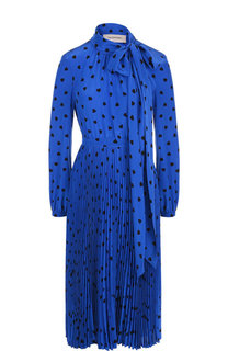 Голубое шелковое платье 'Star Studded' от Valentino. Косой воротник, деталь со складками, потайная застежка спереди, длинные рукава, манжеты на пуговицах.