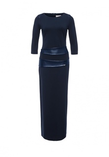 Длинное платье облегающего силуэта. По полочке на уровне бедер и на плечах - вставки из кожзама в тон основной ткани. Сзади по среднему шву разрез. Платье Bezko. Цвет: синий. Сезон: .