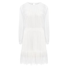 Белое шелковое ажурное платье с фигурным краем от Chloé(Хлое). Круглый вырез, длинные рукава, прозрачная деталь, ажурный дизайн, длина миди.