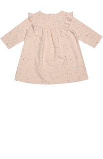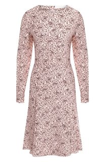 Розовое платье из шелкового микса с цветочным принтом от Chloé(Хлое). Круглый вырез, присборенные детали, свободный крой, широкий рукав три четверти, короткая длина, прямой подол.