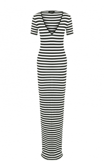 Длинное платье фактурной вязки выполнено из смеси гладкого шелка и мягкого хлопка. Модель в черно-белую полоску дополнена глубоким V-образным вырезом. Дизайнеры марки включили изделие с коротким рукавом в весенне-летнюю коллекцию 2017 года. Нам нравится...