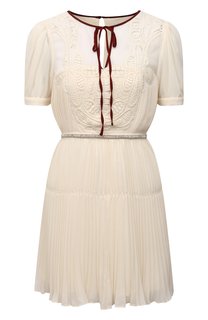 Короткое кремовое платье из коллекции сезона весна-лето выглядит по-девичьи романтично за счет контрастного красного канта, кружевных вставок спереди и узкого пояса, инкрустированного сверкающими кристаллами. Мастера марки выполнили модель из тонкого ше...