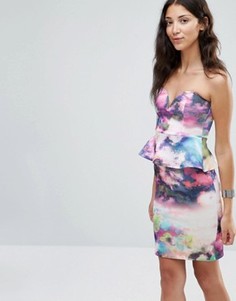 Midi dress by ASOS Collection, Ткань, имитирующая неопрен, Принт, В стиле бандо, Укороченный верхний слой на топе, На молнии сзади, Узкий крой, максимально облегающий тело, Машинная стирка, 96% полиэстер, 4% эластан, Размер на модели: UK 8/EU 36/US 4, р...