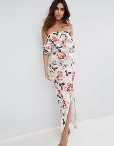 Midi dress by ASOS Collection, Ткань, имитирующая неопрен, В стиле бандо, Двойная оборка, Разрез, На молнии сзади, Узкий крой, максимально облегающий тело. , Машинная стирка, 92% полиэстер, 8% эластан, Размер на модели: UK 8/EU 36/US 4. Рост модели: 174...