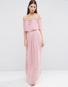 Длинное платье ASOS Collection Тканый материал Лиф в стиле бандо Спущенные плечи Завязка спереди Укороченный волан спереди Классический крой, точное соответствие размеру Машинная стирка 100% вискоза Размер на модели: UK 8/EU 36/US 4. Рост модели - 176 см