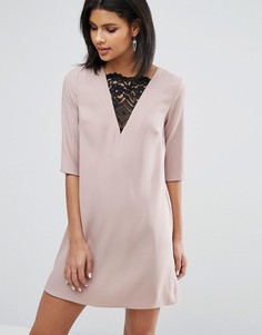 Платье с кружевными вставками River Island, Кружевная ткань частично на подкладке, Высокий ворот, Застежка на молнию сзади, Классический крой, точное соответствие размеру, Машинная стирка, 70% вискоза, 30% нейлон, Размер на модели: UK 8/EU 36/US 4, рост...