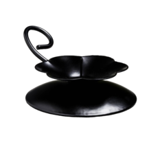 Подсвечник черный металлический. Изготовлен из кованного железа, долговечен, не ржавеет, не ломается и расcчитан на длительное использование. Благодаря элегантной форме он идеален для создания романтической обстановки в день рождения, на свадьбе или про...