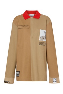 Футболка-поло с длинным рукавом из натурального хлопка-пике в бежевых тонах. Свободный крой. Воротник поло ярко-красного цвета. Модель с контрастным принтом и логотипом бренда. Состав: Материал: 100% хлопок