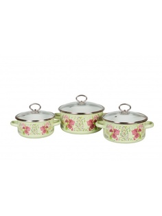 Набор посуды состоит из 3 кастрюль разного объема и 3 крышек. Изделия выполнены из качественной эмалированной стали. Эмаль защищает сталь от коррозии, придает посуде гладкую поверхность и надежно защищает от кислот и щелочей. Эмаль устойчива к пищевым к...