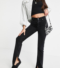 Джинсы для миниатюрных ASOS PETITE, Неэластичная джинсовая ткань, Черный цвет с эффектом потертости, Необработанный пояс и манжеты, Ширинка на молнии, Пять карманов, Каскадные оборки, Прямой фасон штанин. 1,60 м и ниже? Лондонский бренд ASOS PETITE отби...