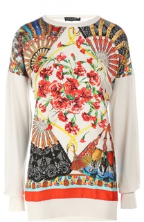 Флористика — неиссякаемый источник вдохновения Доменико Дольче и Стефано Габбаны. Яркий тому пример — пуловер из осенне-зимней коллекции 2021 года, на котором распустились крупные цветы. Модель с длинными рукавами сшили из легкого мягкого шелка. Рекомен...