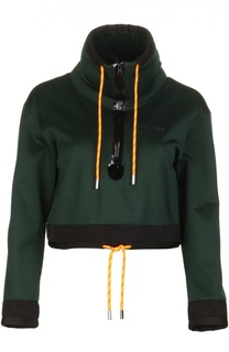 В коллекцию сезона весна-лето 2016 года вошла зеленая укороченная толстовка с длинными рукавами и воротником-стойкой. Модель создана из мягкого хлопка, манжеты, пояс и V-образная вставка на горловине, скрытая молнией, – из черного мембранного трикотажа....