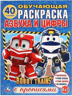 Обучающая раскраска с наклейками. Азбука и цифры. Робот Трейнс за 334 руб.
