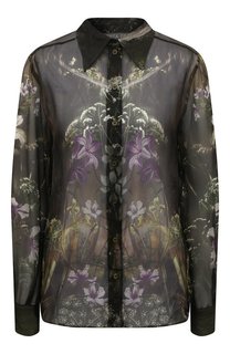 В дизайне этой рубашки прямого кроя Альберта Ферретти объединила романтику и провокацию, выполнив ее из тончайшего прозрачного шелка с узором в виде нежных садовых цветов. Из-за нарисованных бутонов проступает слегка размытое изображение соцветий болиго...