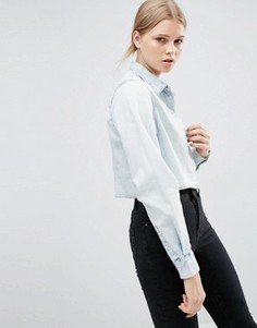 Джинсовая рубашка Wednesdays Girl В точности как на нашей модели ASOS Широкий воротник Застежка на пуговицы Рукава-фонарики Манжеты на резинке Укороченная длина Классический крой Размер соответствует указанному на этикетке Эксклюзивно для ASOS