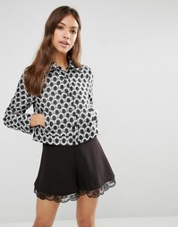 Рубашка Topshop Укороченная модель Широкий воротник Нагрудные карманы Застежка на пуговицы Просторный крой