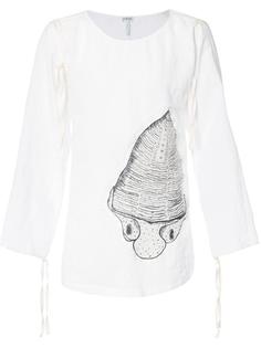 Белая рубашка-туника с драпировкой от Loewe. С драпировкой. V-образный вырез, длинные рукава.
