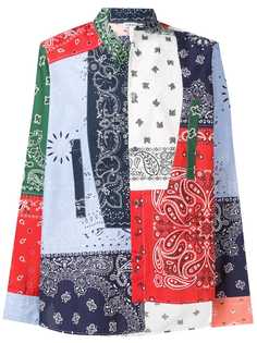 Рубашка в технике пэчворк от Loewe. Модель без воротника, застежка на пуговицах спереди, имитация карманов, длинные рукава, манжеты на пуговицах, принт пейсли, контрастные панели, разрезы по бокам и закругленный подол. Цвет: разноцветный.