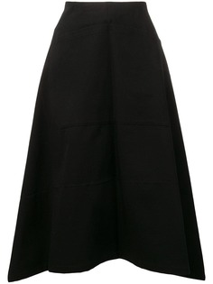 Юбка клеш от Loewe. Асимметричный подол, деталь с узелком, средняя посадка, застежка на пуговицах спереди и передние карманы. Цвет: черный.