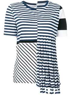 Рубашка с полосками от Loewe. Круглый вырез, короткие рукава, отделка в рубчик, асимметричный подол и узор в полоску.