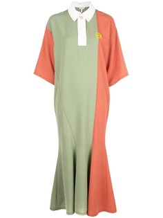 Платье в стиле колор-блок от Loewe. Классический воротник, короткие широкие рукава и средней длины. Цвет: светло-зеленый, оранжевый.