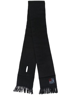 Known as a leather specialist since 1846, the Spanish label was all about craftsmanship. Now Loewe has become more eclectic and contemporary than ever. This navy blue embroidered logo cashmere scarf from Loewe features a contrast embroidered logo and fr...