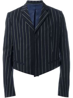 Синий укороченный блейзер в полоску из хлопкового микса от Haider Ackermann.