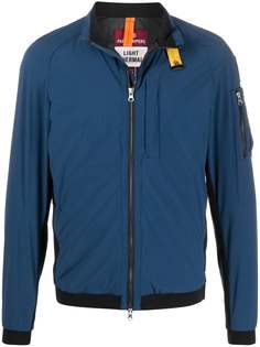 Синяя спортивная куртка от Parajumpers. Воротник-стойка, длинные рукава, контрастные манжеты, двухсторонняя молния, эластичный подол, прорезные карманы по бокам, контрастная окантовка, короткая длина, цельная подкладка. Размер этой модели соответствуе...
