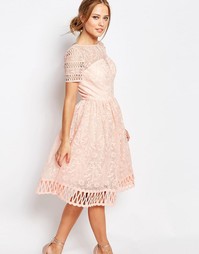 Кружевное платье Chi Chi London Кружево с цветочным рисунком Подкладка-бандо Высокий ворот Вырезная отделка на рукавах и кромке Вырез капелькой с застежкой на пуговицу сзади Застежка-молния сзади Классический крой, точное соответствие размеру Ручная сти...