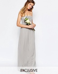 Maxi dress by Little Mistress, Тканый топ с подкладкой, Кружевной верхний слой, Фасон бандо, Юбка с сетчатой подкладкой, Присборенная эластичная вставка на спине, Классический крой, точное соответствие размеру, Ручная стирка, 100% полиэстер, Размер на м...