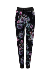 Прямые спортивные брюки на широкой резинке, из френч терри с люрексом. Боковые швы отделаны контрастными лампасами, боковые карманы с отрезным бочком.
