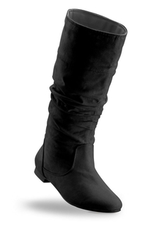 Высокие сапоги стрейч удобно носить благодаря эластичному верхнему краю и низкому каблучку (около 2 см). Внутренняя отделка из текстиля, подошва из синтетики. Высота/ширина голенища около 37/30 см. Идеально для сочетания с мини или легинсами.