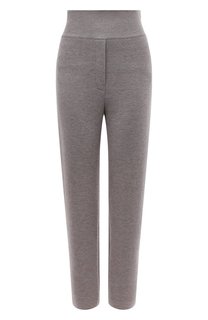 Мягкие светло-серые брюки прямого кроя, с высокой посадкой и широким поясом выполнены из тонкого кашемирового трикотажа. Мягкий шелковистый материал успокаивающе действует на кожу, а одежда из него отлично держит тепло тела. Однотонная модель вошла в ос...
